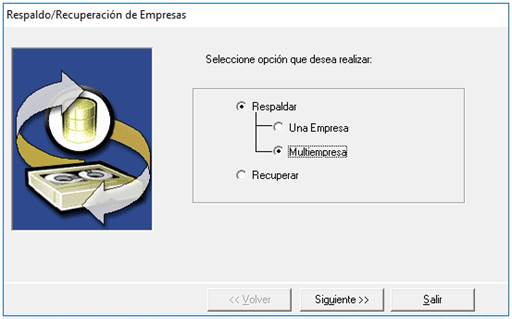 Al seleccionar la opción Multiempresa, el sistema permitirá seleccionar una Base de Datos o las que usted estime conveniente respaldar.
